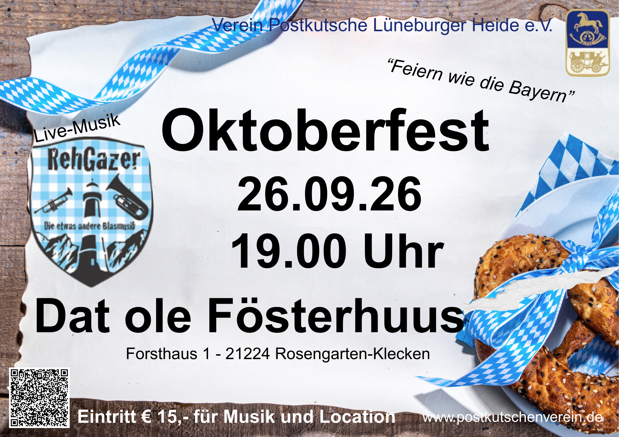 Feiern wie die Bayern im Klecker Wald. Für die musikalische Begleitung dabei "RehGazer". Eintritt € 15,- Karten gibt es über unseren Onlineshop