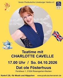 "Teatime" im "Dat ole Fösterhuus". Englischsprachige Lieder, dazu Tee und Häppchen. Eintritt € 20,- für Musik, Tee und Häppchen.